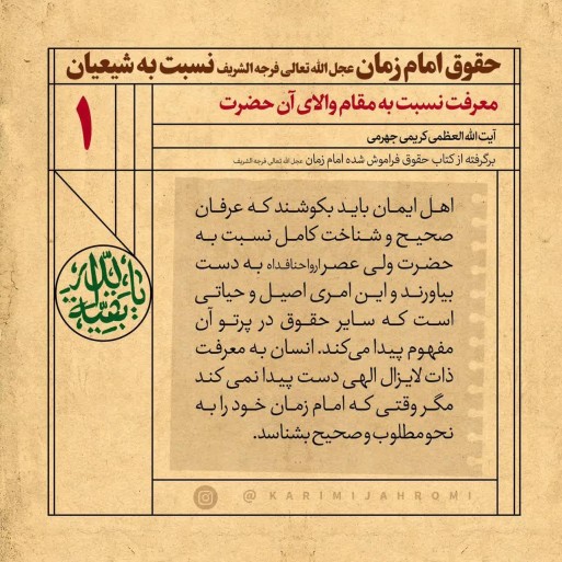 📚برگرفته از کتاب حقوق فراموش شده امام زمان عجل الله تعالی فرجه، آیت الله العظمی کریمی جهرمی.