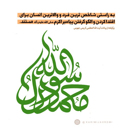 به راستی شاخص ترین فرد و والاترین انسان برای اقتدا کردن و الگو گرفتن پیامبر اکرم صلی الله علیه و اله هستند. برگرفته از بیانات آیت الله العظمی کریمی جهرمی