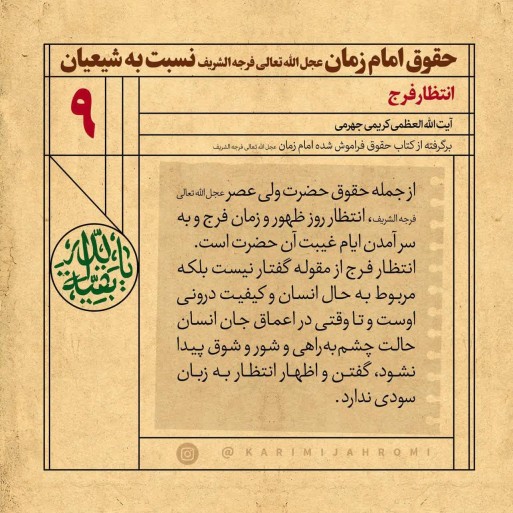 📚 برگرفته از کتاب حقوق فراموش شده امام زمان عجل الله تعالی فرجه، آیت الله العظمی کریمی جهرمی